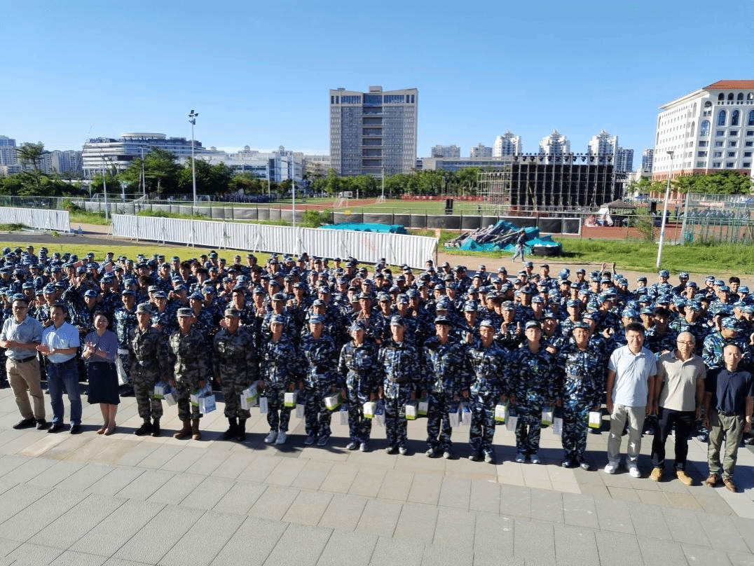 参加活动老师为教官及新生递发慰问品并在现场举行集体大合影,为新生的大学开篇留下珍贵记忆。此次活动不仅拉近了学院与新生的距离,更让新生们在入学之初便感受到归属感,为他们开启大学新生活注入了温暖动力。