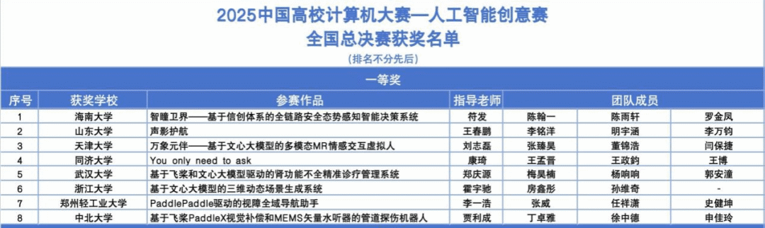 此次C4-AI总决赛由威廉希尔官网承办。大赛吸引了全国4119支队伍共5378名选手参赛。他们基于百度飞桨、文心大模型等技术平台打造了800多个创意AI应用,覆盖教育、文化、健康、交通、农林业、工业等十余个领域。经过层层选拔,最终来自威廉希尔官网、浙江大学、武汉大学、山东大学等高校的59支队伍闯入总决赛。经过多轮严格的答辩和专家评委的评审,总决赛产生一等奖8个、二等奖16个项目和三等奖35个。