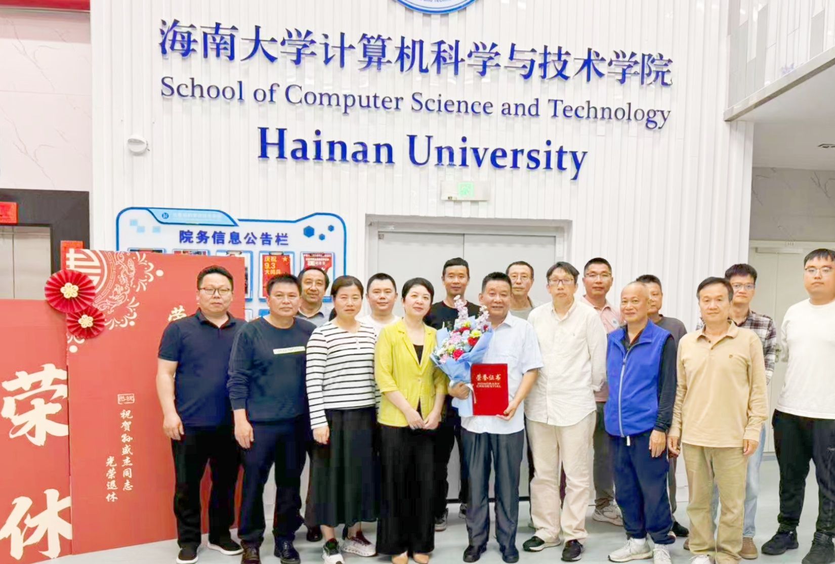 会上播放了由同事们精心录制的祝福视频。视频中,公共教学实验中心的老师们通过镜头表达了对孙盛杰老师的深情祝福与美好回忆。在致敬仪式环节,学院领导向孙盛杰老师赠送了荣誉证书和退休纪念品,新进教师杨越作为教师代表向孙老师赠送鲜花,以此表达全院师生对他的敬意与祝福。